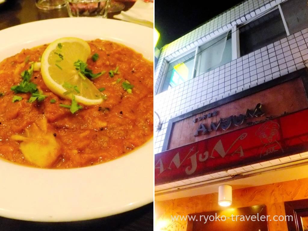 My friend asked me to join dinner at Anjuna (アンジュナ) that is an Indian foods restaurant close to Takahata Fudo station. Takahata Fudo station is larger than expected and I couldn’t find my exit. Nevertheless the restaurant can be reached within one minutes walk, I lost my way. I took more five minutes to there.