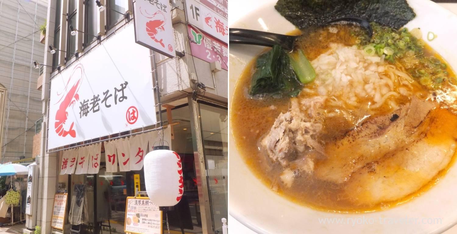Because I wasn’t satisfied with shrimp ramen at Ebikin what I ate before, I went to shrimp ramen shop in Funabashi area. The shop’s name is Ebisoba Maruha (海老そば まるは). Nevertheless it is far from the station and it was already past 2 p.m., half of the seats were occupied.
