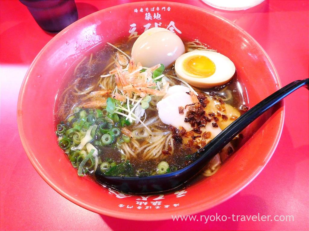 Ebikin is open from lunch to dinner. I’m glad that many ramen shops in Tsukiji is open throuhout their business hour.