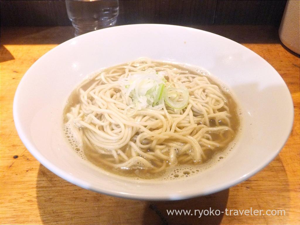 The soup have expensive dried from Kujyukuri of Chiba.They use expensive dried sardine from Kujyukuri of Chiba. So, the soup is precious and they don’t serve much soup. The surface of the noodles were rough and picked up the soup more easily.