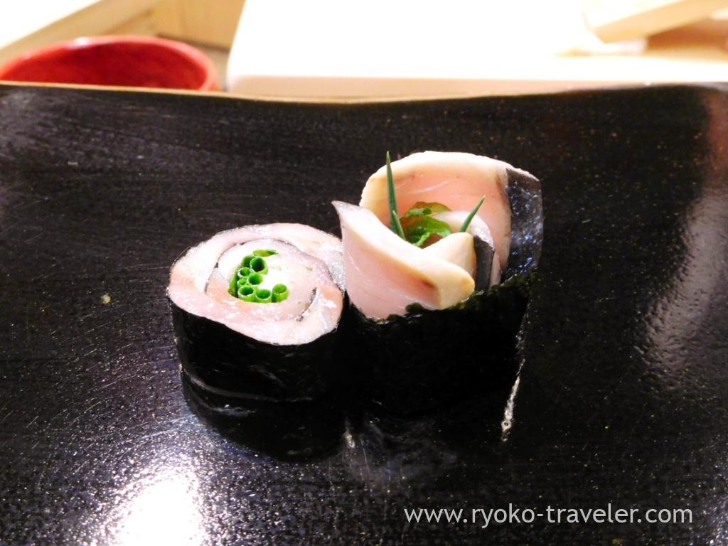 This was the finest sushi that day. Red sea bream is served every time as well as medium-sized gizzard shad. So, I enjoy the difference every time.