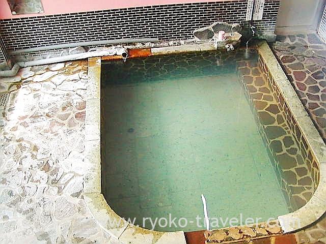 The onsen water was excellent. This onse water is softer and smoother than Kusatsu Onsen’s. Though I took only a picture of indoor bath, I took a open-air bath, too. There were some persons in open-air bath, so I couldn’t take the picture. There is a roof over the open-air bath. It is semi open-air bath, the view is obstructed by the walls.