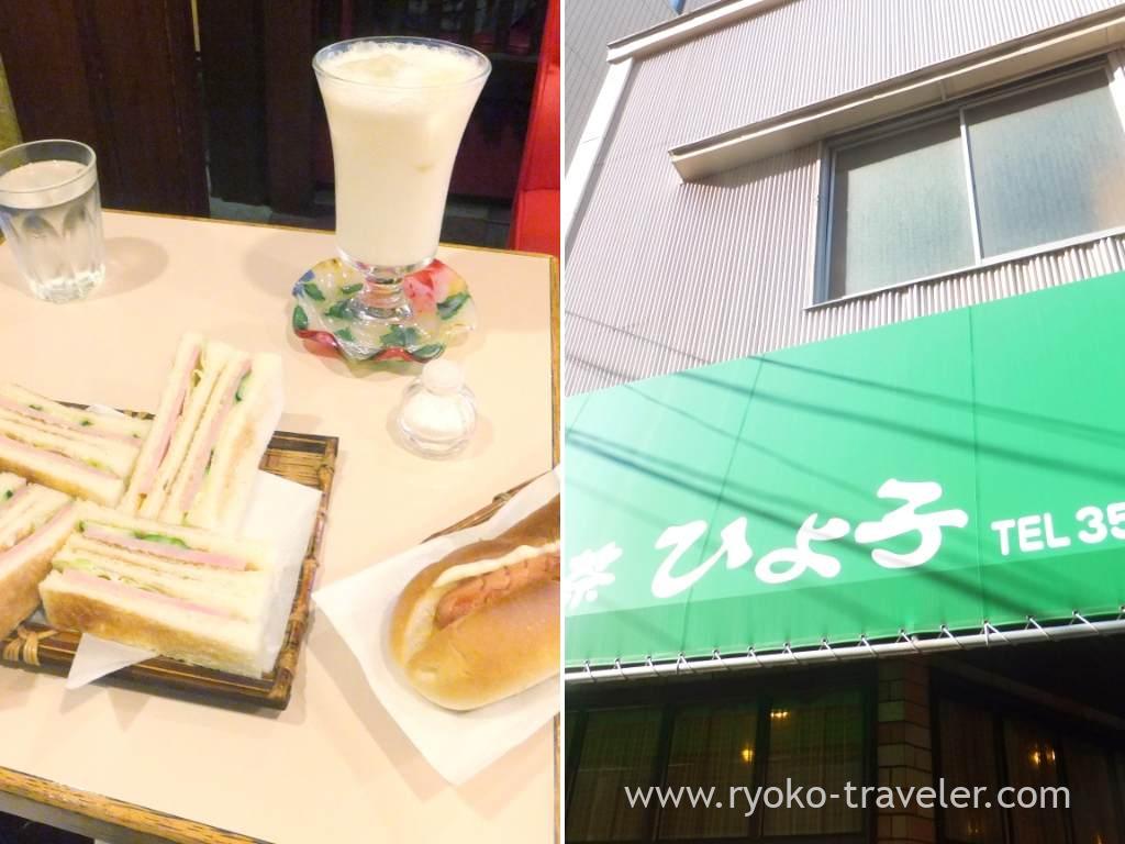 We went to Kissa Hiyoko (喫茶ひよ子) that is one of the old kissaten in Tsukiji. They will end their business at the end of this month. I just had coke float the other day but I wanted to eat sandwich, too.