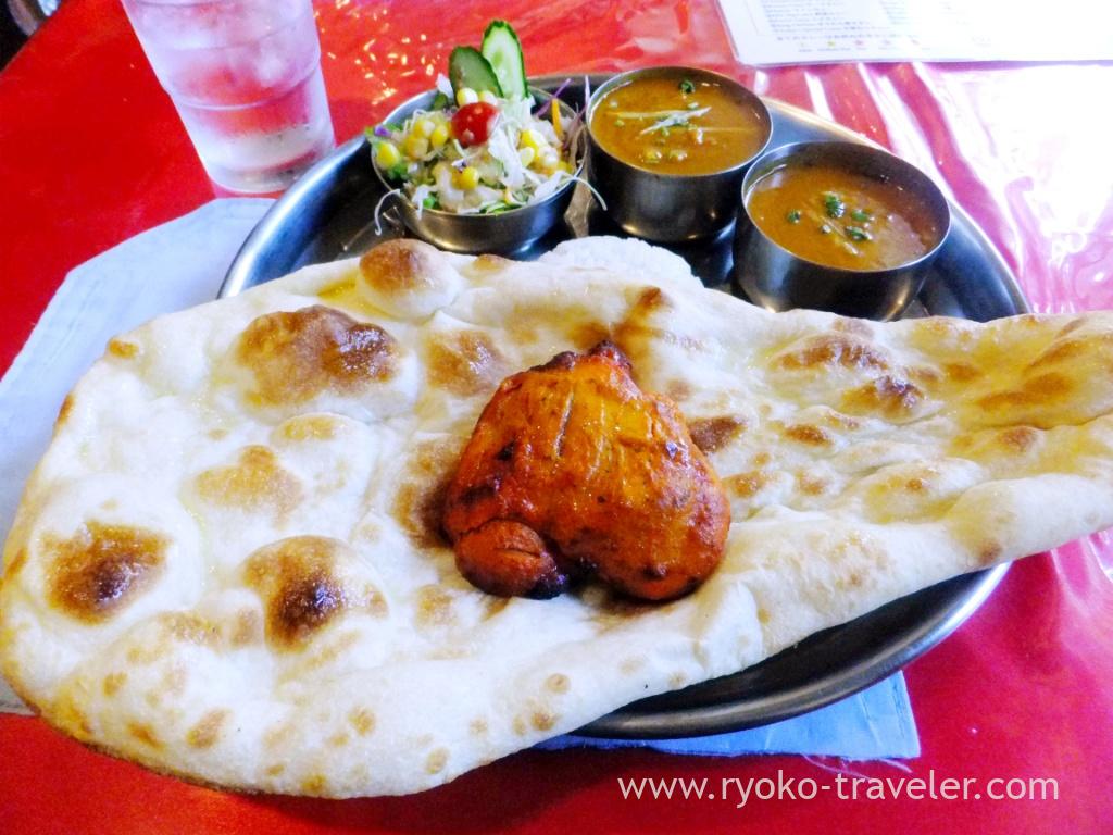 At lunchtime, we can select one from some sets. Those sets are different in accordance with its amounts. And we can select our curries from “today’s curry” and some curries. We can also choice the degrees of spiciness. Such a system can be seen at many Indian restaurants 🙂