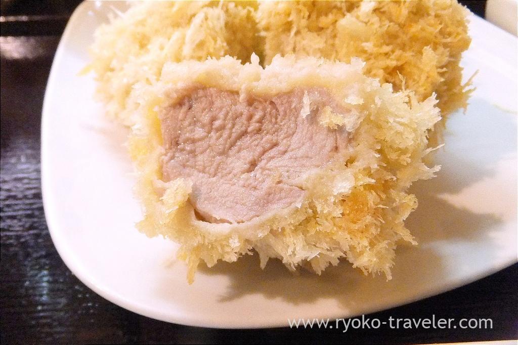 The white coating on Narikura’s tonkatsu is characteristic, achieved by frying at a lower temperature for a longer time than usual.