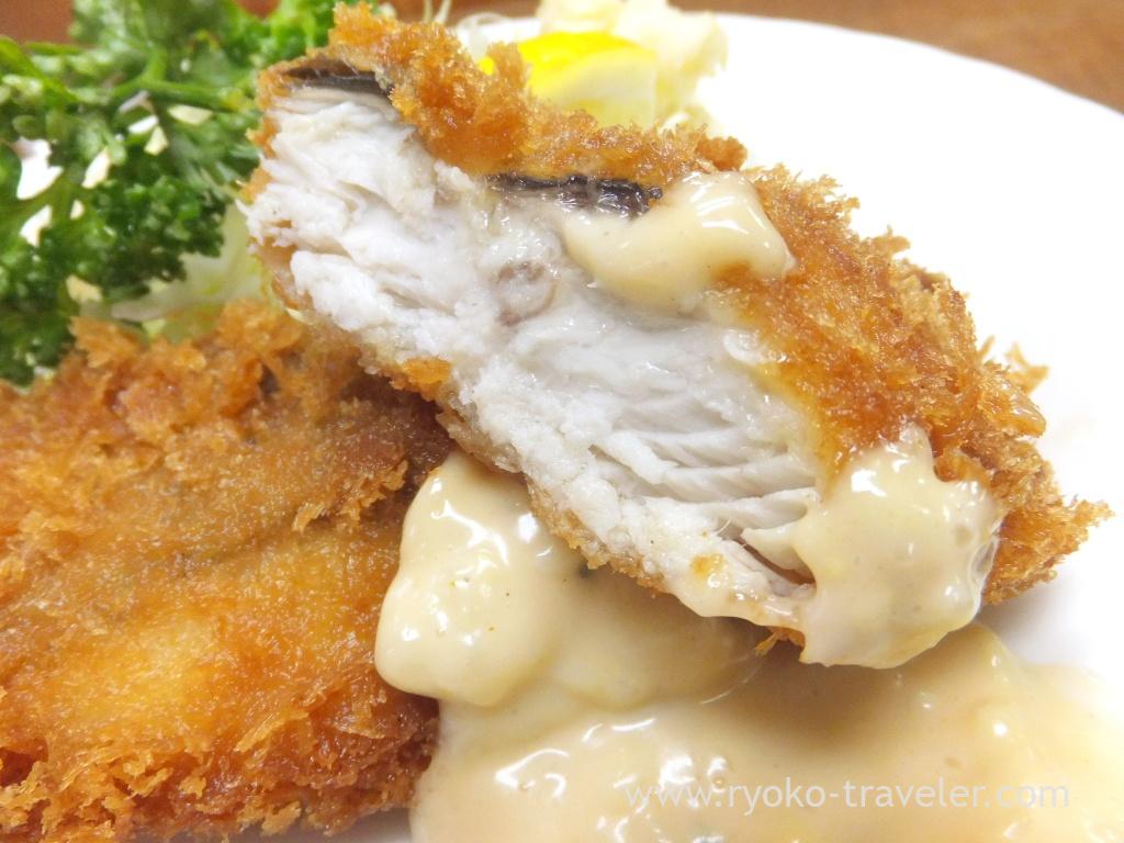 But everything that I wanted was not on the menu. Oh my ! I was very disappointed because it’s too hard for me to get up early this morning. But I had no time to cry. I had to decide my breakfast soon. I had no energy to see another menus. So, I ordered deep fried Spanish mackerel (Sawara in Japanese) on the blackboard menu. And also I ordred rice and miso soup.