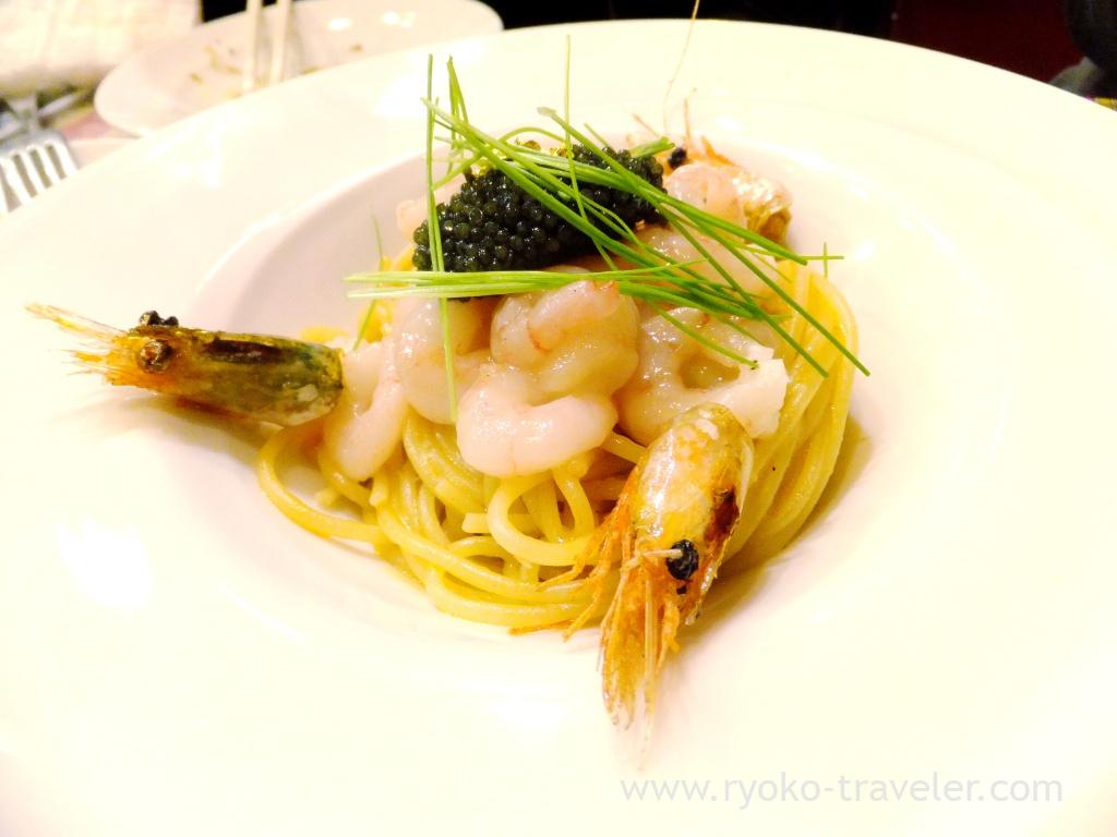 Spaghetti with caviar and Pandalus borealis (キャビアと甘海老のスパゲティ) 1380 yen