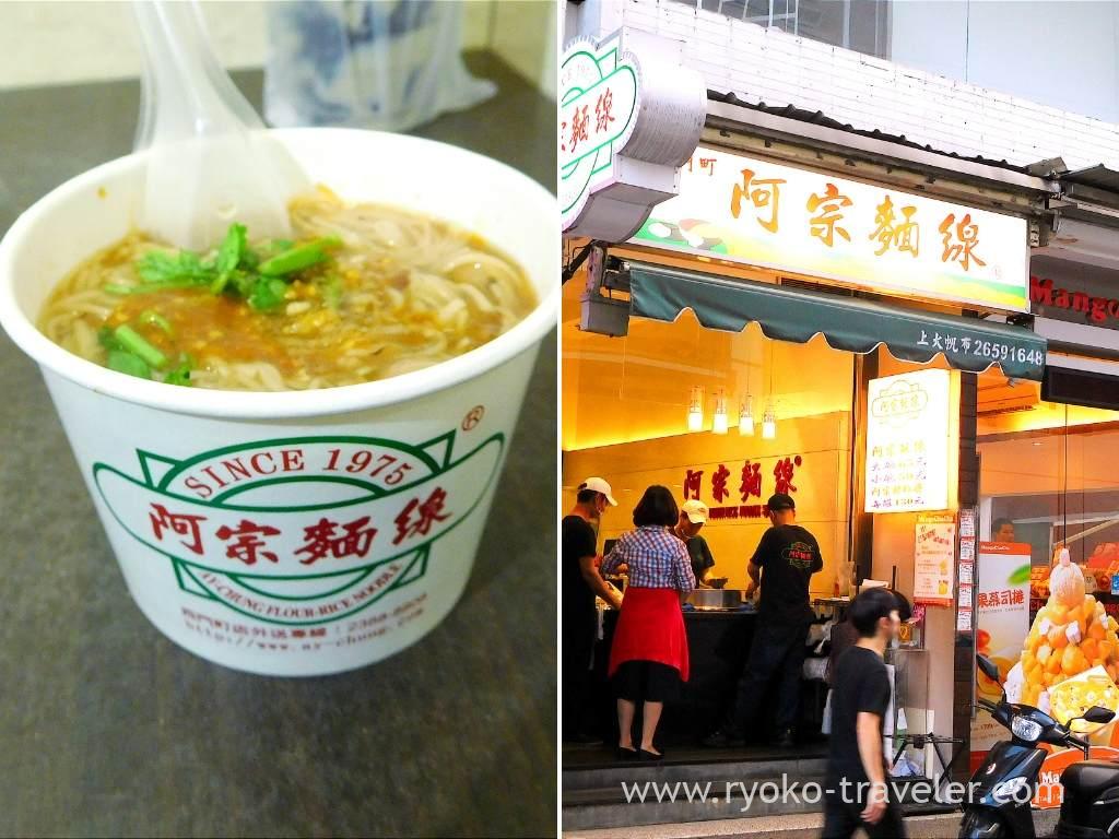 After returning to Zhongxiao Fuxing Station by bus from Jiufen, I was wandering around the station area when I stumbled upon a familiar sign. It was Ay-Chung Flour Rice Noodle (阿宗麵線)