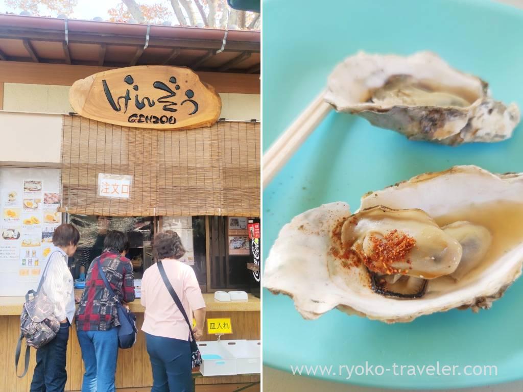 When in Matsushima, the first thing that comes to mind is, of course, oysters! As soon as I arrived at Matsushima Kaigan Station, I headed straight to try some local oysters at Genzou Seafood Grill (げんぞう). The shop is located in a modest, unassuming building.