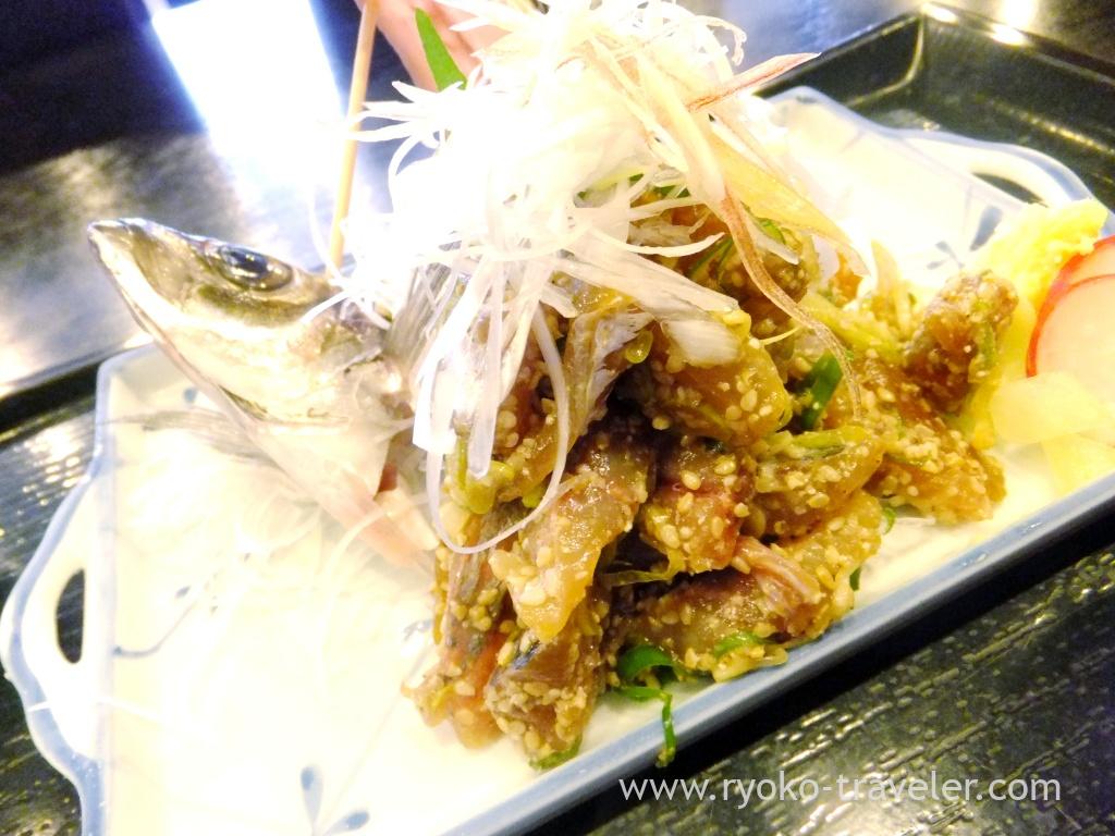 The horse mackerel’s meat was mixed with plenty of sesami, ginger and green onions. And lots of potherbs on it. It was really tasty. Well, I should have been to there earlier !