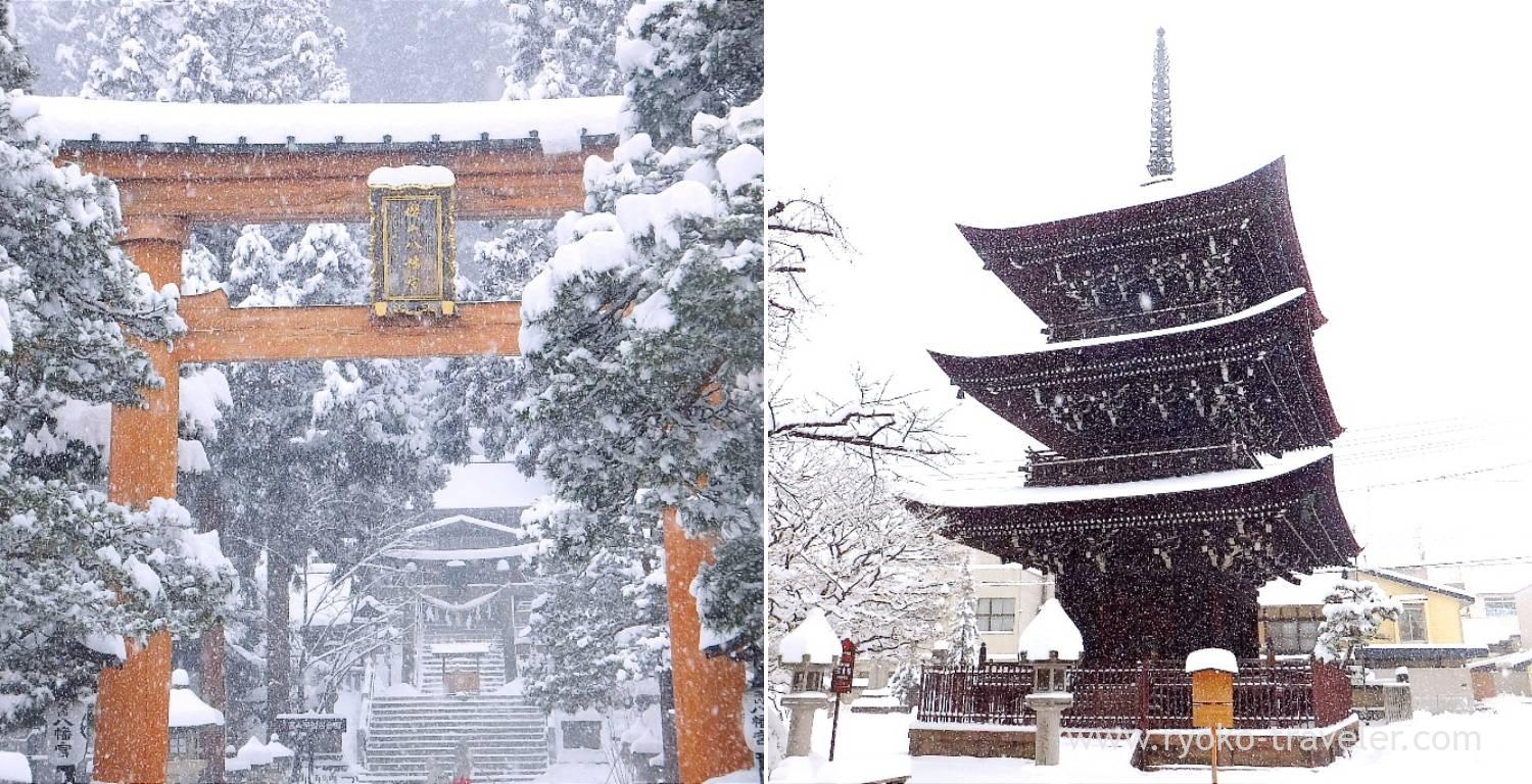 We went to Sakurayama Hachimangu shrine (櫻山八幡宮) on foot after exploring Takayama Jinya in a snowstorm. This street is usually filled with many visitors, but as you can see, we were the only ones there :p