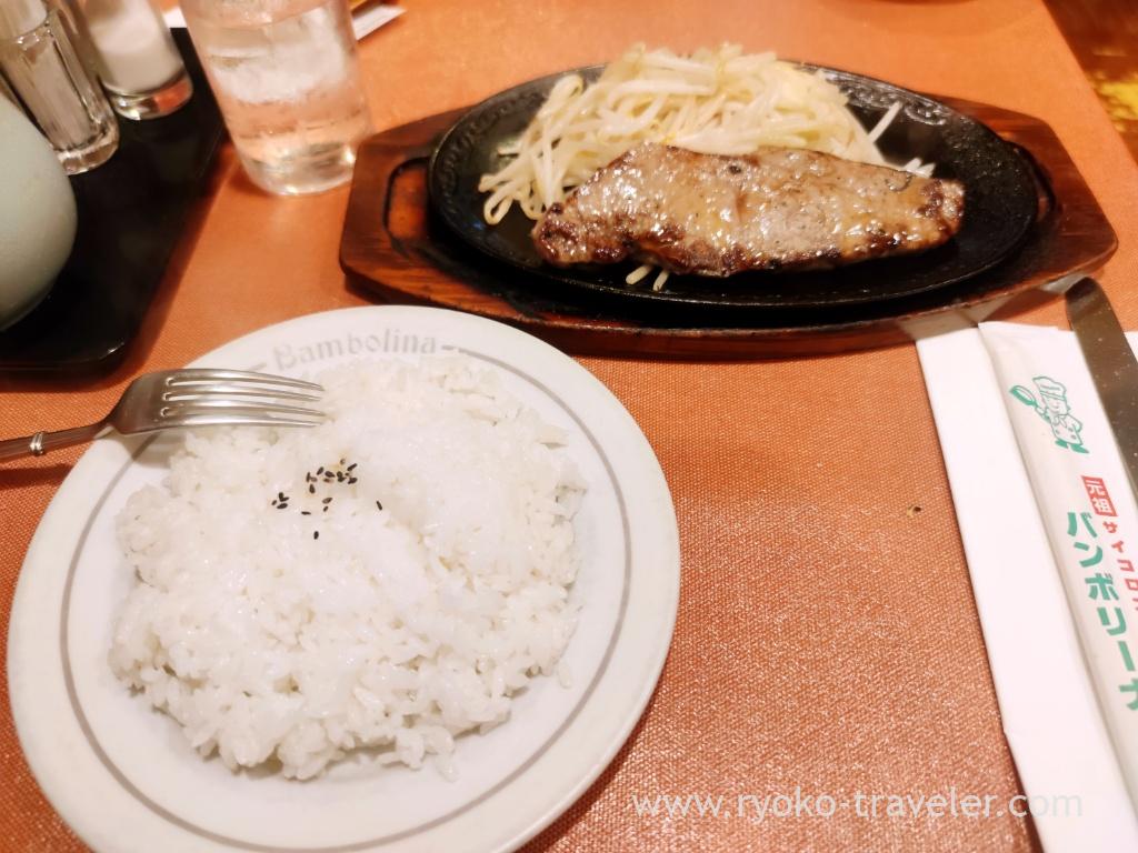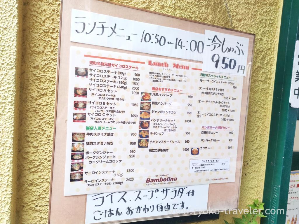 Restaurant Bambolina (レストラン バンボリーナ) is located in the Kabutocho area, near Nihonbashi. Established in 1978, this restaurant is known as the birthplace of Saikoro Steak (diced steak). Naturally, I visited to try their famous dish. They open at 10:50 a.m., and when I arrived shortly after 11 a.m., about one-third of the tables were already occupied.