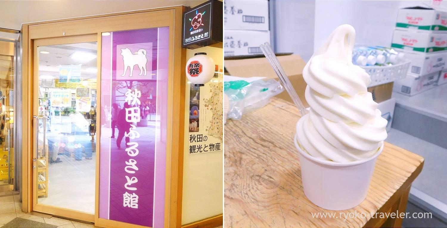 Now still it’s suitable temperature to enjoy soft serve. I like soft serve better than ice cream because my stomach is weak for cold food and I feel soft serve is milder than ice cream. Tokyo Kotsu Kaikan bldg. have many local shops. For example, Hokkaido, Okinawa, Fukuoka and so on. And many shops have soft serve. Akita Furusatokan (秋田ふるさと館), too.