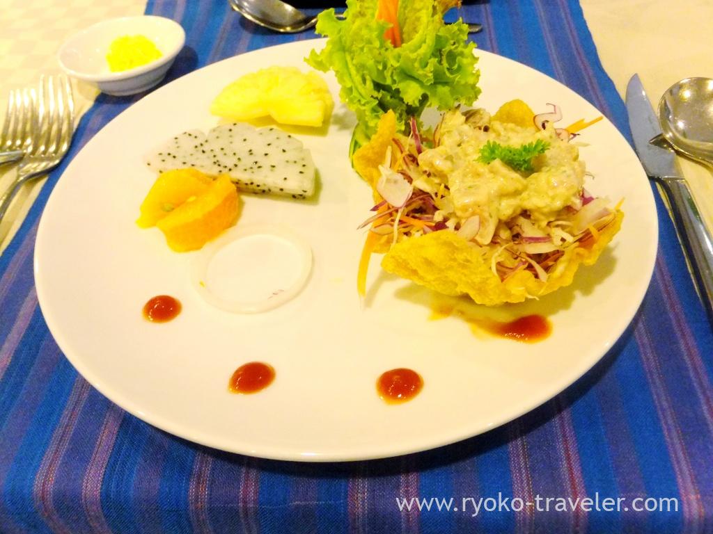We had lunch at Angkor Miracle Resort & Spa before goint to Angkor Wat on the second day of our trip in Siem Reap. They are five-star hotel in Cambodia. The restaurant served French foods. At first, appetizer was served.
