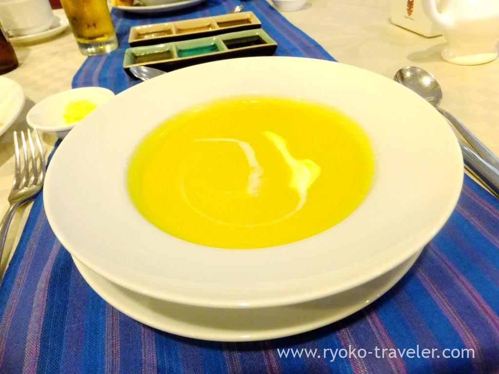 Pumpkin soup. It didn’t have sweetness. I needed sugar… Cambodian pumpkin don’t have sweetness ?