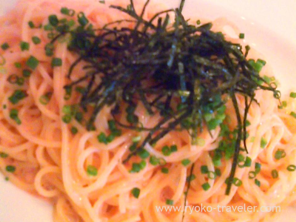 Almost all their spaghetti cost under 1000 yen. Inexpensive. I know tarako sauce is Japanese flavor. Not common in another countries. So, if you visit Japan, I recommend you eat spaghetti with tarako sauce as well as sushi, yakiniku and ramen 🙂