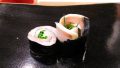 They also serve several types of sashimi bowls. One of my favorites is this Three-color sashimi bowl. It includes tuna, nakaochi (scraped meat from the tuna spine), young boiled sardines, and flying fish roe. Hmm… maybe it’s actually a four-color bowl? Like the grilled tuna collar set, it comes with a small dish, pickles, and miso soup.