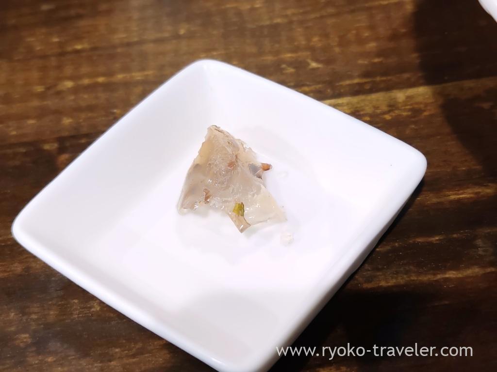 And they prepare such an item for sio ramen. Laver and lemon jelly. The chef said to me, “Add to change the tastes after eating some”. But unfortunately, I couldn’t find the tastes at all. I tasted just it, certainly it had a little sourness and flavor.