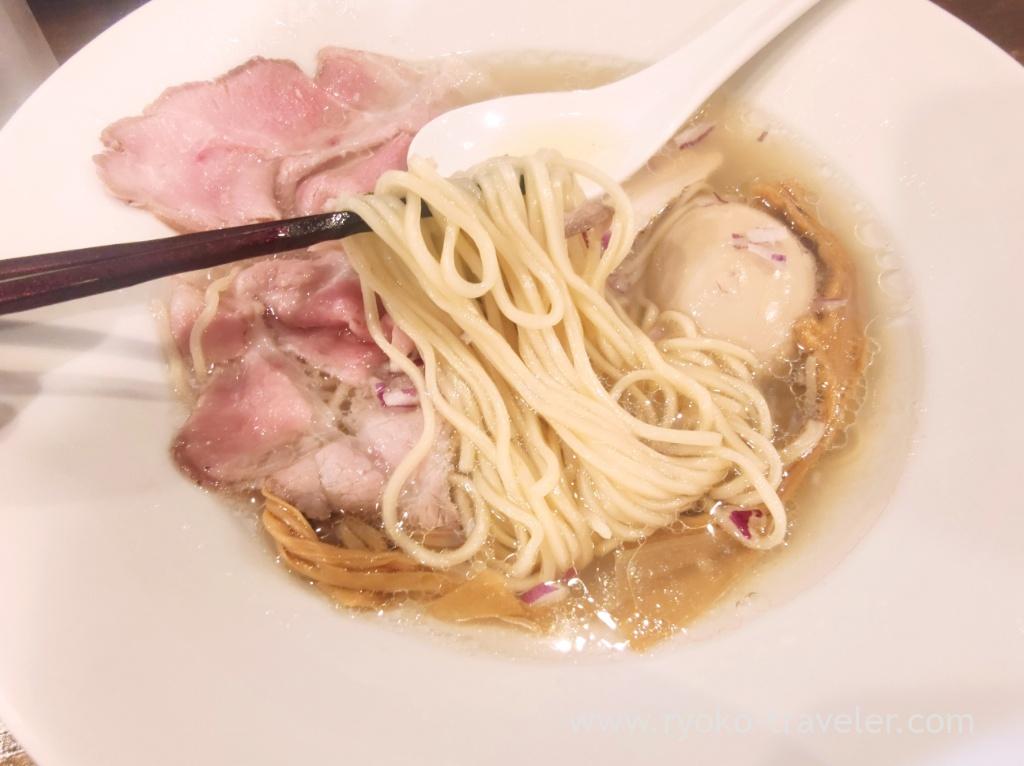 So, of course, I had sio ramen. Special sio ramen with shell soup stock. This transparent soup had plenty of extract of shell. The soup is not very hot. Rather rukewarm. It had egg, bamboo shoot (long !), roast pork, and roast chicken.