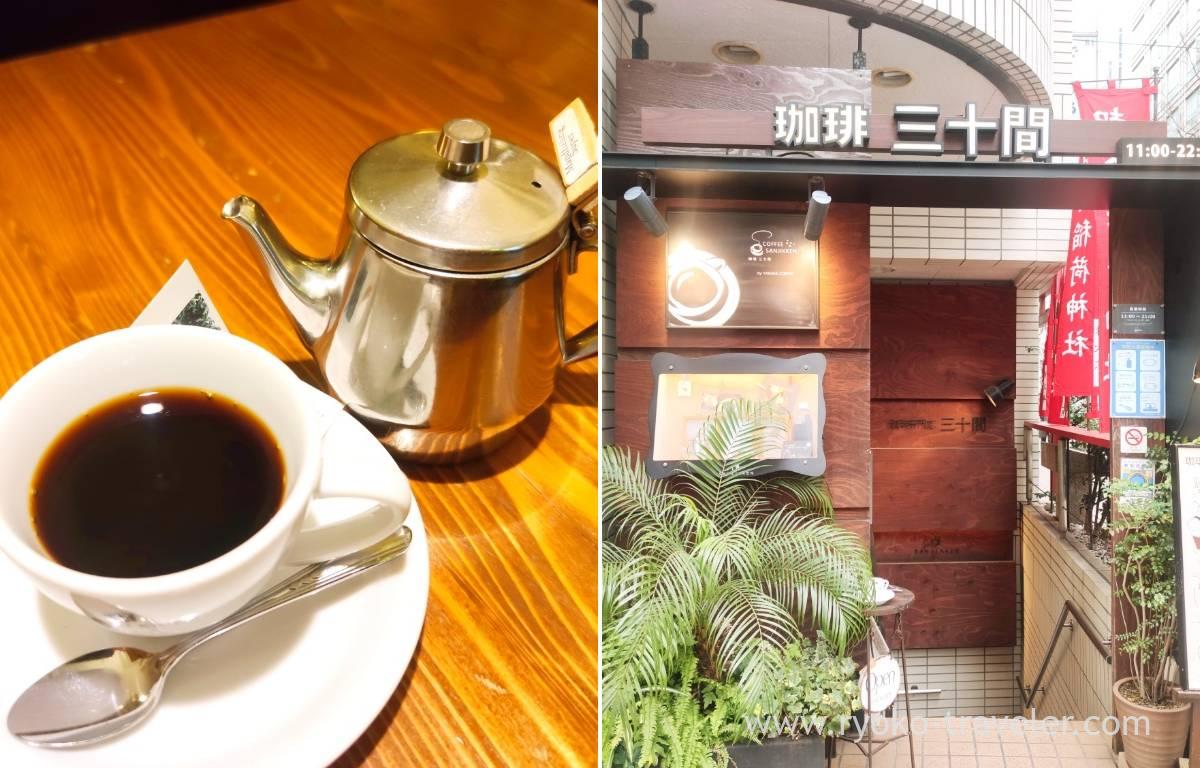 I felt like having coffee break after having lunch at Ginza and I went to this Sanjikken (珈琲 三十間). This cafe is managed by Yanaka Coffee (やなか珈琲) that is a coffee beans shop. They are located at the back of small shrine named Asahi Inari shrine.