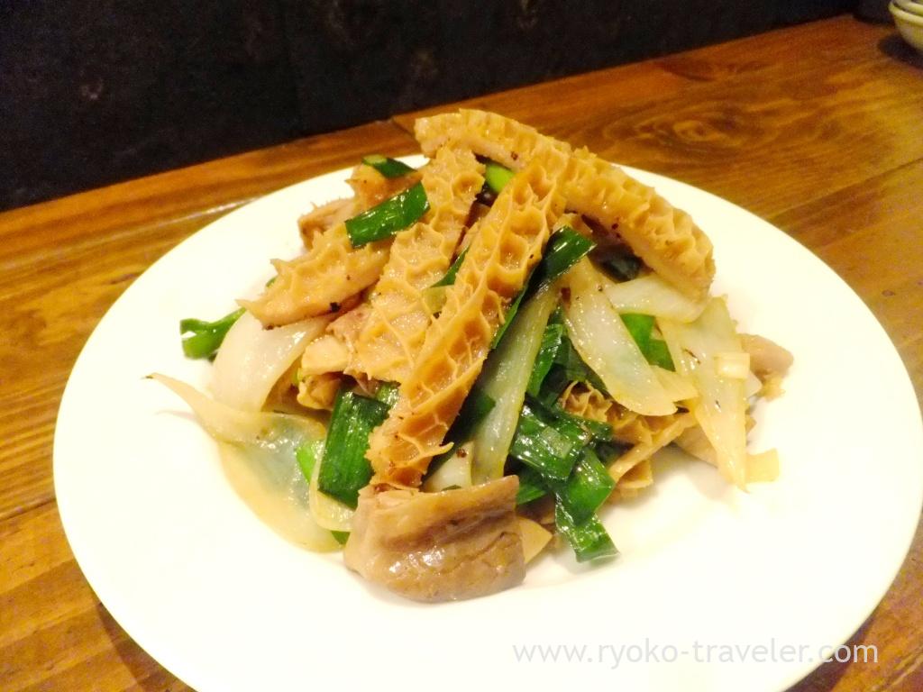 At first, Fried cow’s heart and pig’s gut with baijiu. This is a dangerous food. Cows’ heart and pigs’ guts were fried with Baijiu (= Chinese liquor) that have around 50 alcohol content. And the strong alcohol content remained :p But the pigs’ guts was soft and tasty. We enjoyed it. My friend who don’t drink much got drunk :p