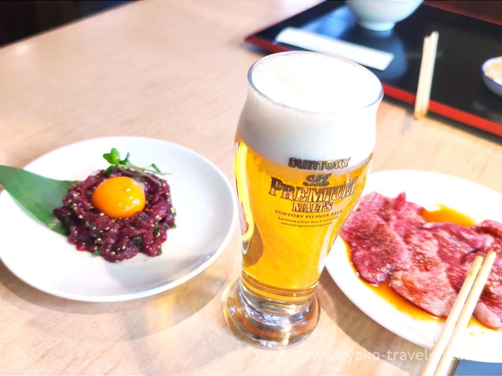 Glass beer is only 220 yen at lunchtime. So, we can enjoy yakiniku and alcoholic drinks at such a valuable price 🙂