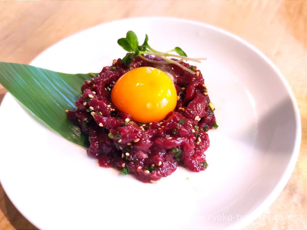 We ordred Sakura yukhoe, too. Sakura means horse meat. Not cherry blossom. It was good. It was seasoned well. It go with alcoholic drinks !