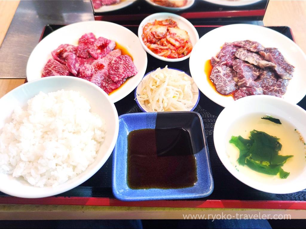 We had lunch at Wagyu Yakiniku Gyutoku (和牛焼肉 牛徳) in Shimousa-Nakayama. We heard they serve valuable yakiniku lunch, so we wanted to visit there for a long time. But sometimes they close quite before the closing time. So, we were glad when we saw “OPEN” 🙂