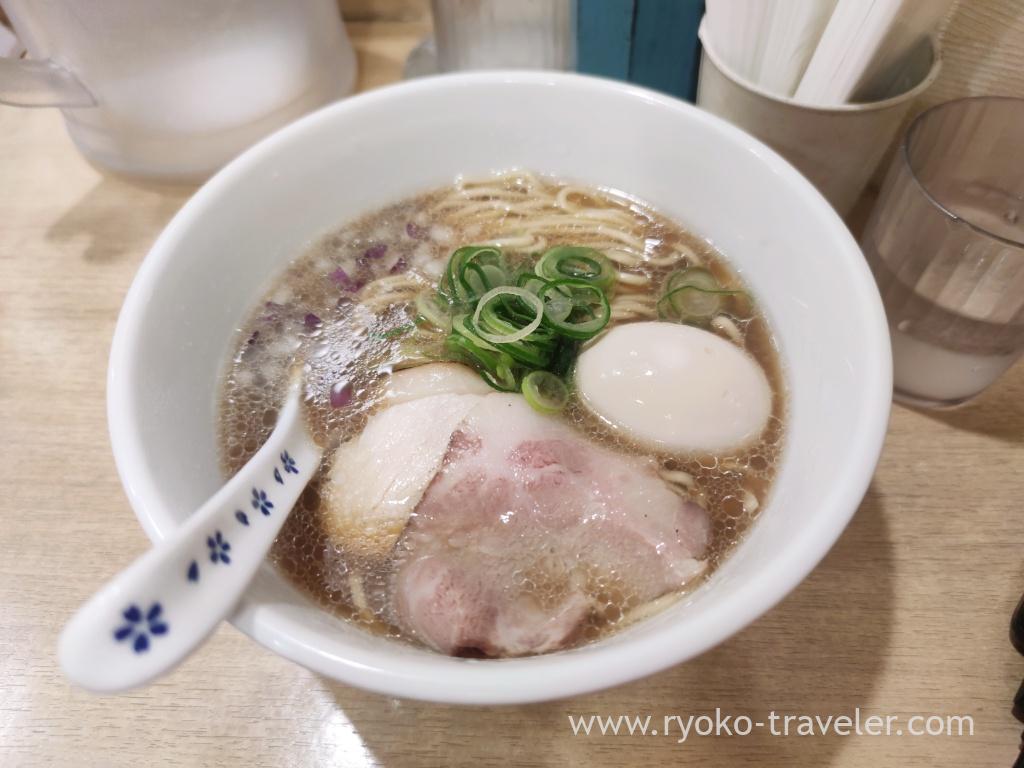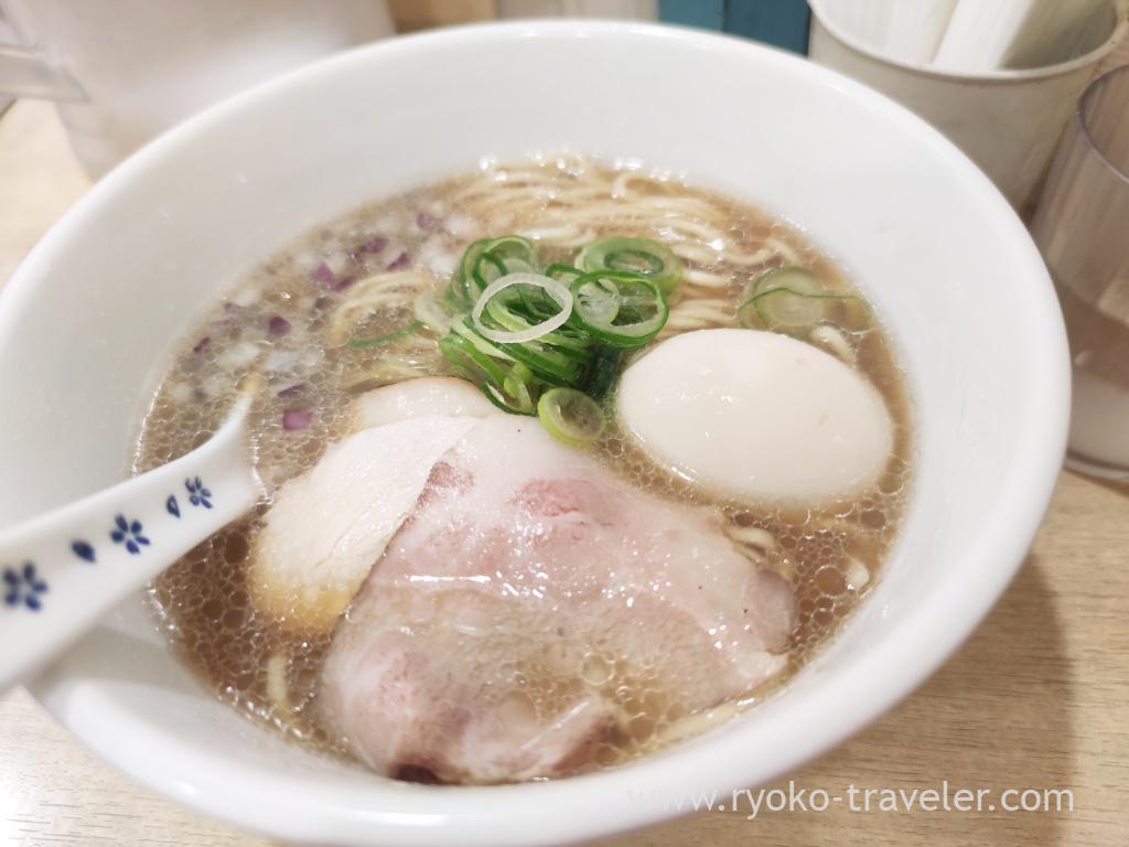 Because it was raining and I was carrying a lot of bags, I only took a few photos. The ramen comes in three types: soy sauce, salt, and paitan. All of them use shellfish-based broth, and on the ticket machine the amount of shellfish extract is shown in five levels (🐚🐚🐚🐚🐚). Based on that, the strength of the shellfish flavor seems to go from strongest to mildest as paitan -> salt -> soy sauce.