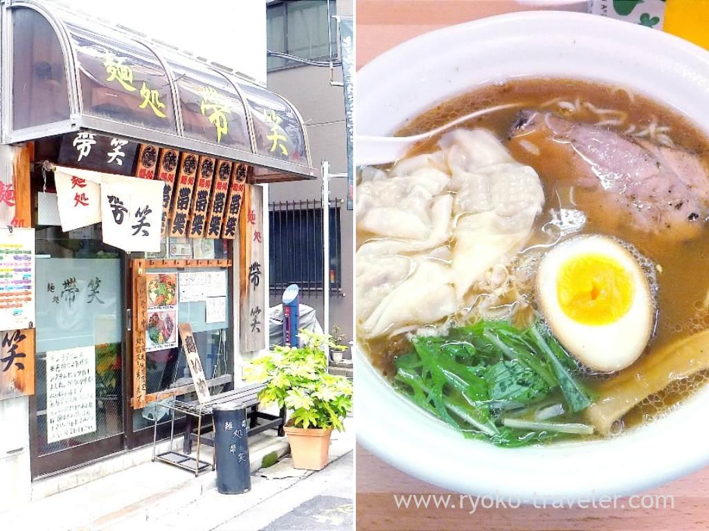 One day I felt hungry on my way to Tsukiji and I couldn’t stand any more. But I was just in Shintomicho. Speaking of Shintomicho, it is office town and that was Saturday. Almost all shops and restaurants are closed when weekends. But fortunately, I could find a ramen shop named Mendokoro Taisho (麺処 帯笑). I entered into this shop without hesitation because I knew their name slightly.