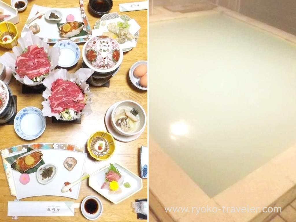 It is deprived that a deer soaked his body to healed his wound in ancient times. Open-air bath, too. Because the hotel is on a hill, the open-air bath commands a fine view 🙂