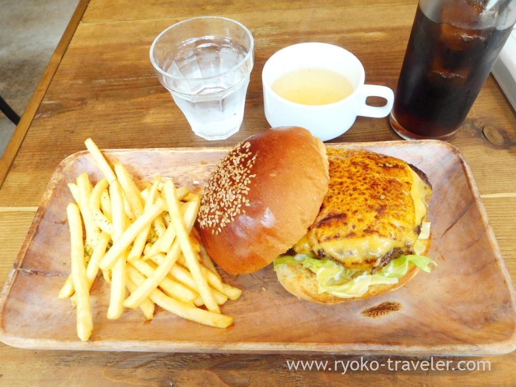 When I visited there for the first time, I chose cheese hamburger that is my delight. All food have soup at lunchtime and all hamburger have French fly.
