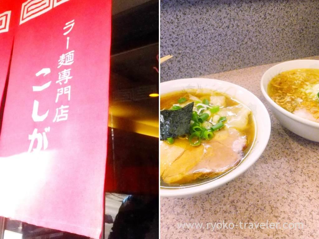 My friend heard there’s a popular ramen shop in Koshigaya. And he wanted to go there. Koshigaya…. you might not know. That’s within Saitama prefecture, Chiba’s neighborhood. Why did we have to go to Saitama to eat ramen all the way from Chiba, nevertheless Chiba have much good ramen shops. But some of our acquaintances sometimes said about this shop. Of course, good reputation. So, we went to there. The shop’s name is Ramen specialty shop Koshigaya (ラー麺専門店 こしがや). They have such an impressive red shop curtain.