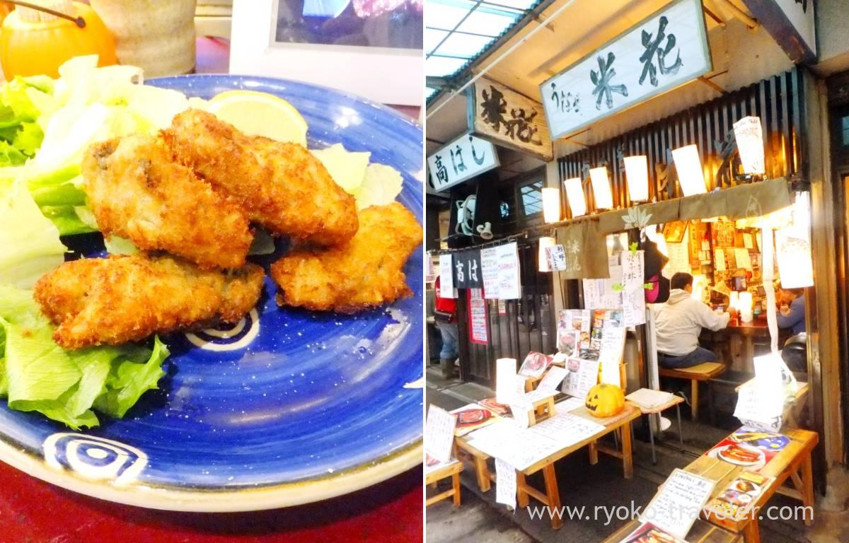 That day, at first, I thought to eat deep fried oysters and fried oyster set at Odayasu. But my stomach was still weak after my recent illness and I thought I should avoid oily deep fried foods. So, I went into Yonehana. On entering the shop, I found there was no guests. Everytime I go to Yonehana, I find it is nearly full or few guests because it’s early morning. The staff said it takes much time to prepare my breakfast. “What happen ?”, I said.